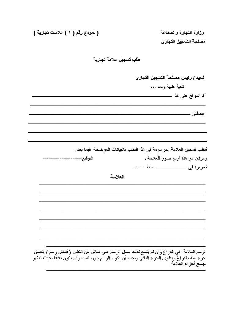 الإدارة العامة لحماية الملكية الفكرية استمارة تقديم طلب تسجيل علامة
